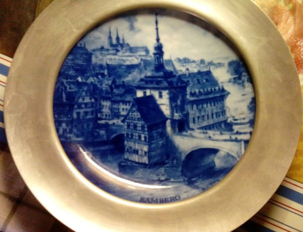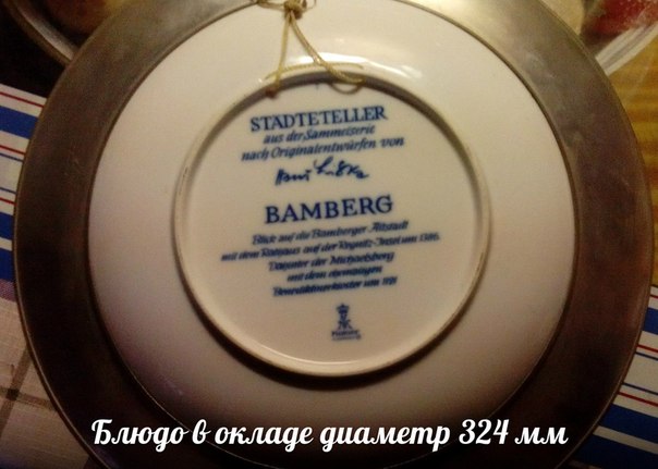 Тарелка "BAMBERG", диаметр - 325 мм, ручная роспись, имеет клеймо и дырочки для подвеса на стену, состояние идеальное.