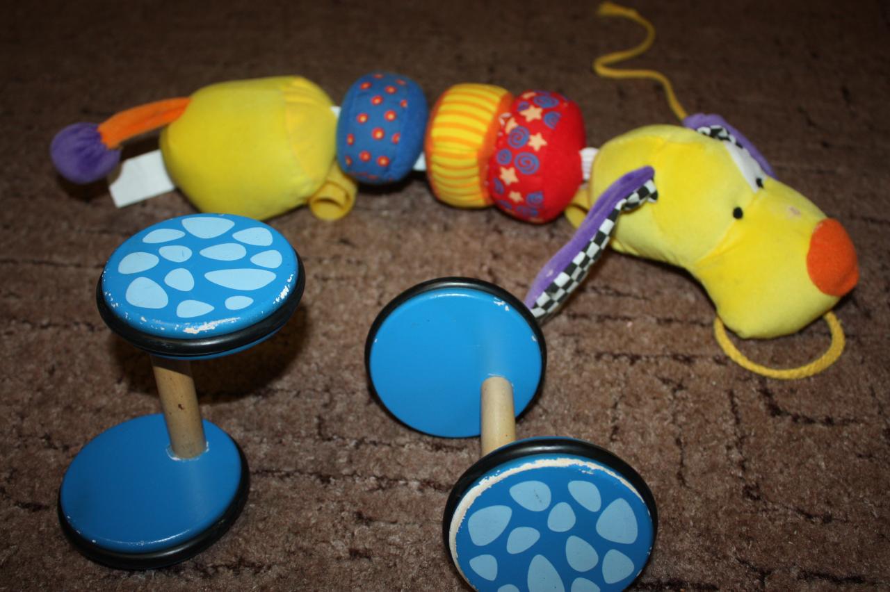 1.Собака - 50 грн ( у неё шелестят ушки и звенит хвостик, можно возить за веревочку, колесики снимаются, ее можно стирать) есть 2 шт