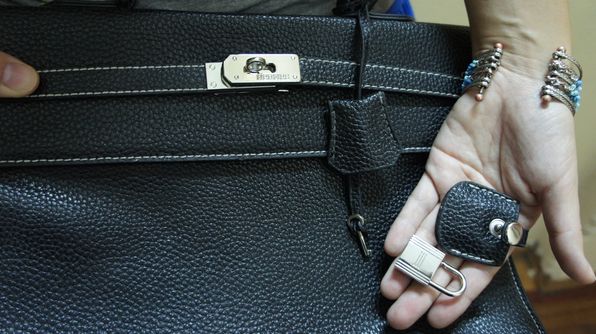 мой портфель можно отличить только если заглянуть внутрь и проверить, что это не кожа. Практически точная копия, сохранена вся атрибутика.