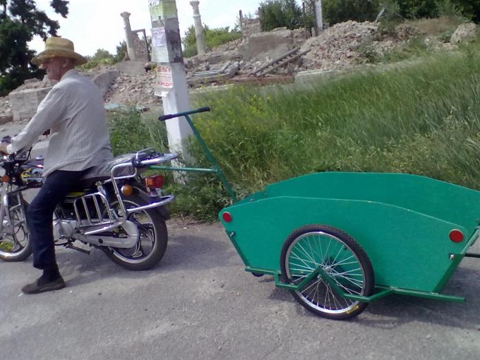 Тележка на базе передних колес велосипедов типа «Кама», «Десна» диаметром 508 мм которая предназначена для перевозки грузов весом до 120 кг. как вручную так и в качестве прицепа для велосипеда. Полезный объем кузова составляет 215,7 литров. Тележка снабжена вспомагательным поворотным колесом и прицепным устройством.