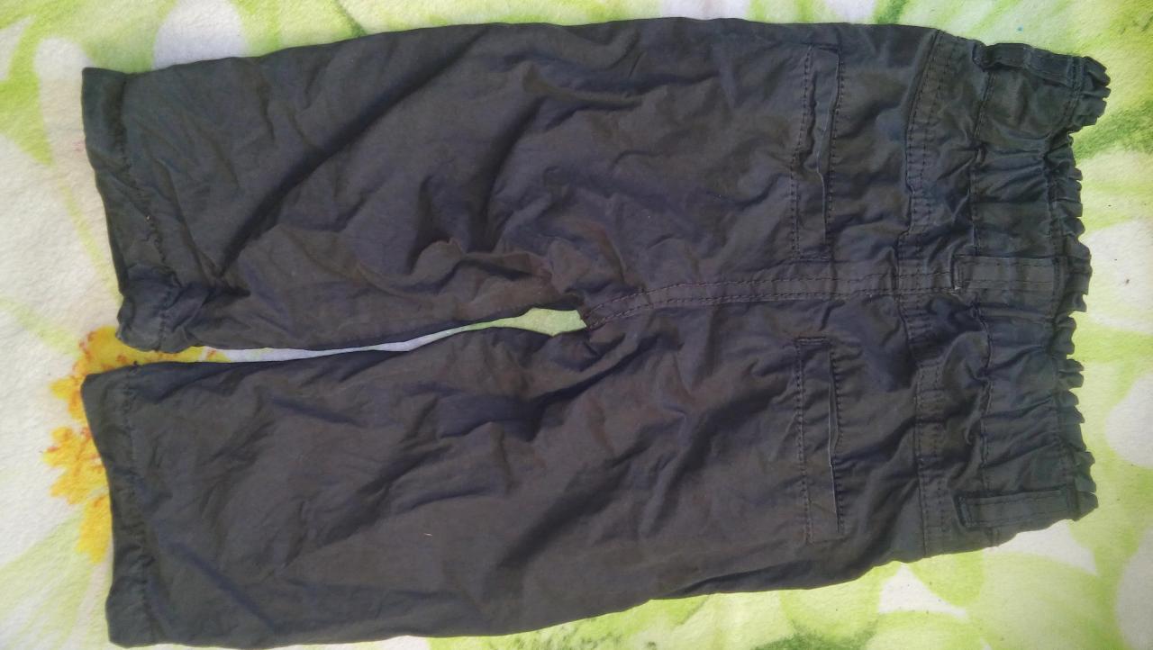 Штанишки покупались в Антошке. Сверху плотная ткань внутри х\ б мягчайшая подкладка. Цвет темно серый. Написано 6-9 мес. Мы не маленькие носили в 1.2. Без дефектов состояние на 5.