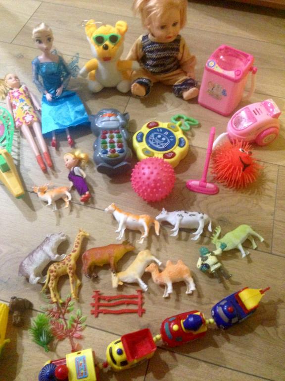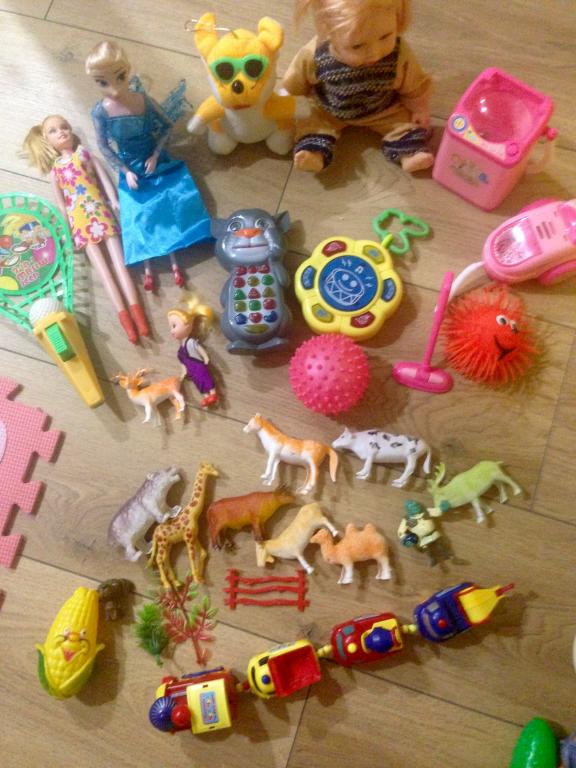 Музыкальная кукла в голубом платье,поет, светиться, телефон котофон, желтая муз игрушка, мяч, зверушки, машинка стиральная и пылесос работают от батареек,