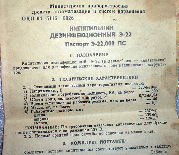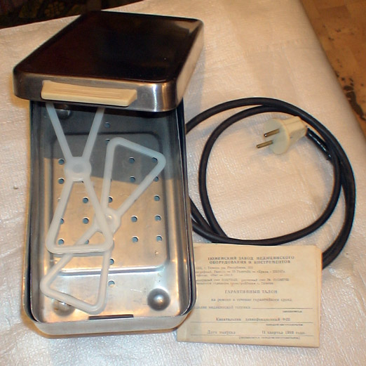 4. Кипятильник дезинфекционный электрический Э-22. Ни разу не использован, в отличном состоянии, правда потерялись две вставные ножки. Предназначен для дезинфекции кипячением в воде медицинских инструментов. http://medshop.com.ua/ru/products/127/14019.html