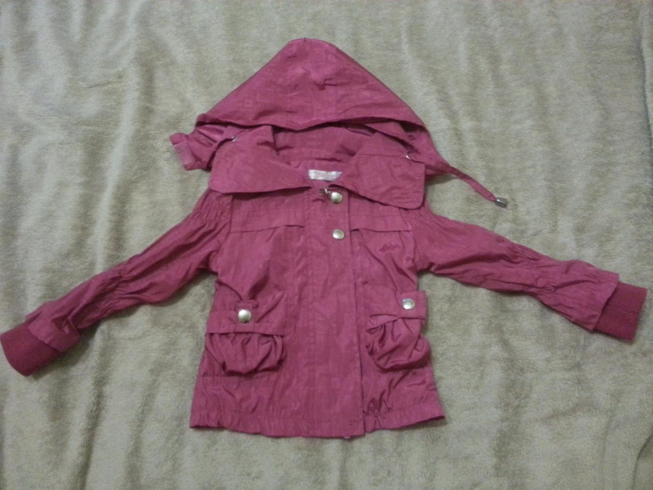 7) Ветровку Smile бордовую на молнии 100 грн, сверху кнопки на 2-3 года. Капюшон на молнии. Длина куртки по спинке 38 см, внутренняя длина рукава 27 см (рукава при собраны)