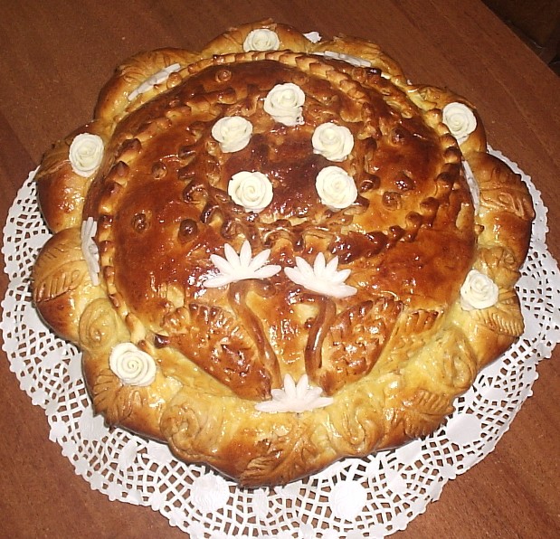 Свадебные караваи украшаются сложными тестяными узорами и веточками калины, которой с языческих времен приписывают мистические свойства и являющейся символом любви.