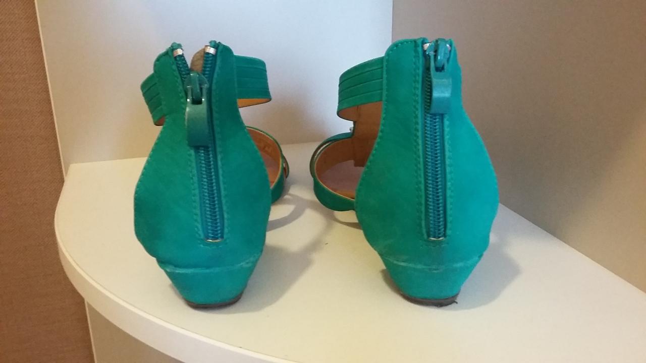 Несмотря на платформу - удобные. На ноге выглядят эффектно. Один ботинок поскрипывает при ходьбе, на металлической вставке спереди потертости, отлетел винтик, на фото видно. Цена - 50 грн.