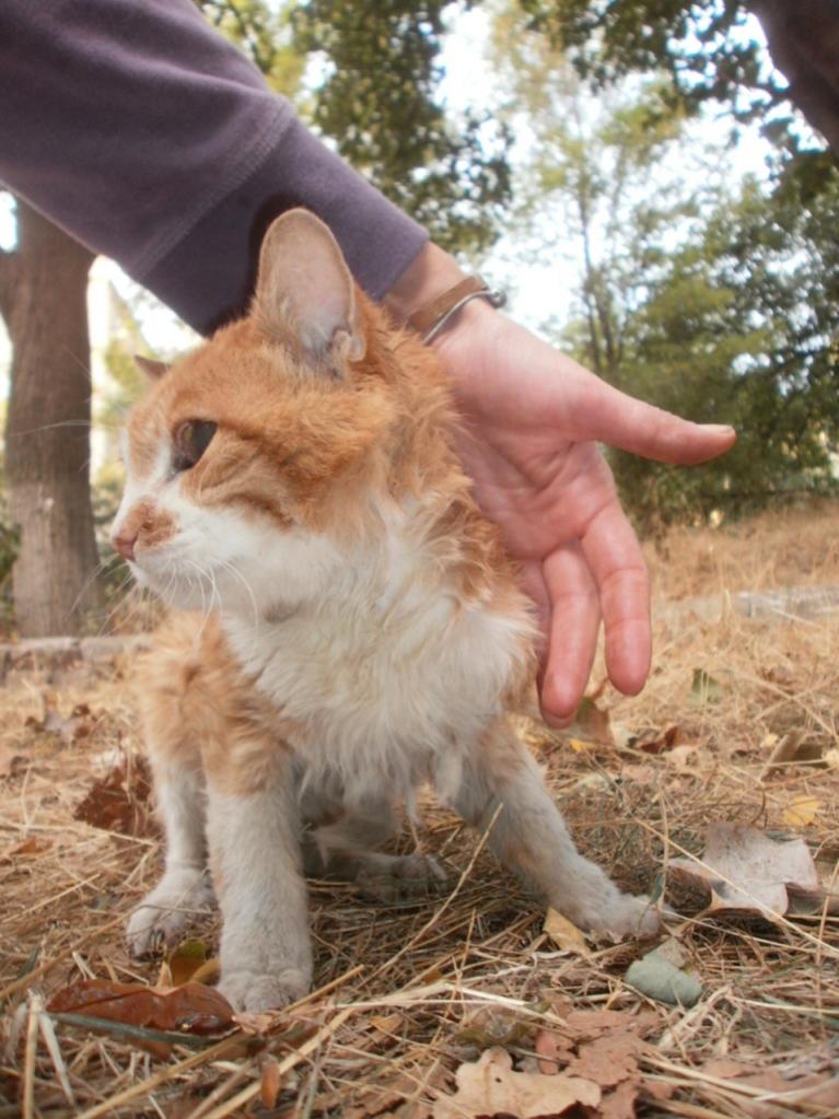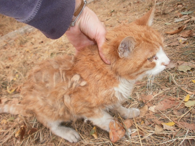 Несколько дней назад у нас во дворе появился этот бедолажный рыжий котейка, люди сказали, что его сбила машина и он ничего не видит, нарушена координация движений, его поместили в огороженный палисадник и вроде ухаживали за ним, лечили, кормили, а сегодня утром, гуляя с собаками, я увидела его бредущим по дороге возле детской площадке, но там постоянно ездят машины, а т.к. котейка ничего не видит и может даже не слышит, участь его была бы предрешена, я попросила дворника взять и отнести его обратно в палисадник, так мы и сделали, но он долго там оставаться не сможет, т. к. в этом палисаднике соседка иногда выгуливает своего лисьего пинчера и сказала, что ей он там не нужен и вообще участь этого кота ее мало интересует. те люди, что за ним ухаживали куда-то подевались, видимо решили, что он безнадежный и оставили его, по крайней мере другого ничего в голову не приходит.