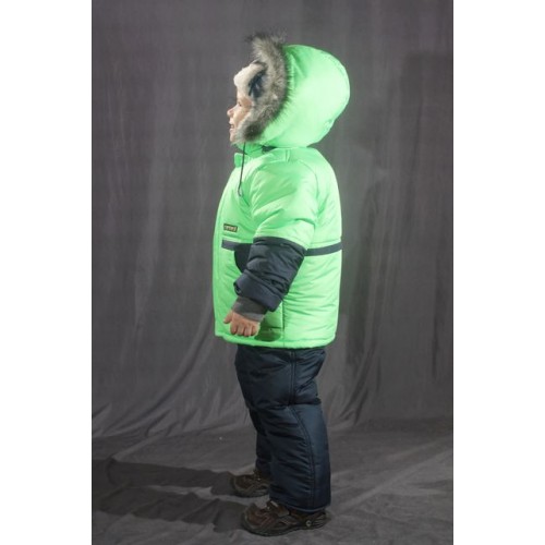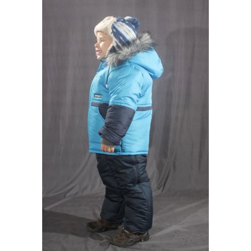 Ткань - плащевка с пропиткой водоотталкивающая, производство Украина. Куртка - наполнение синтепон в рукавах довязы. На меховой подстежке - мех производства Желтые Воды. Брюки - комбинезон. Брители регулируются. Низ брюк с отбойниками. Капюшон отстегивается. Размеры 1, 2, 3 ,4 (от 1 до 5 лет).