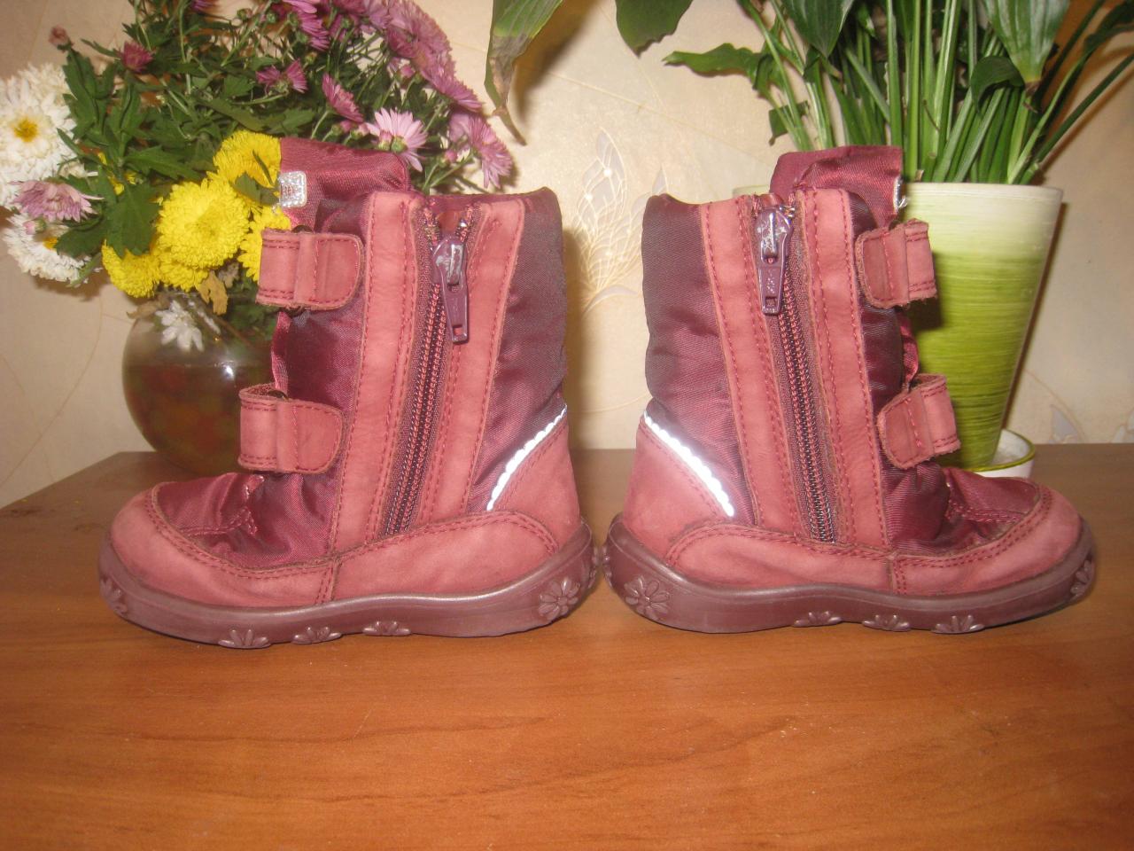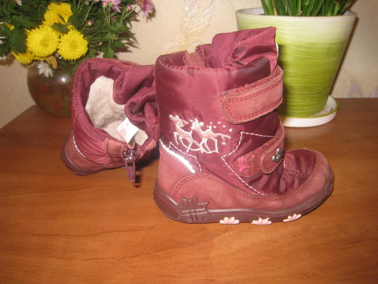 Зимние термосапожки Elefanten (Германия) 23р. в отличном состоянии, внутри 100% шерсть., сбоку змейка.В жизни цвет сапожек равномерный(неудачное фото).Ножки при любой погоде всегда были тёплые.Состояние отличное, т.к. была сменная обувь.Аналог Экко.Цена 500 грн
