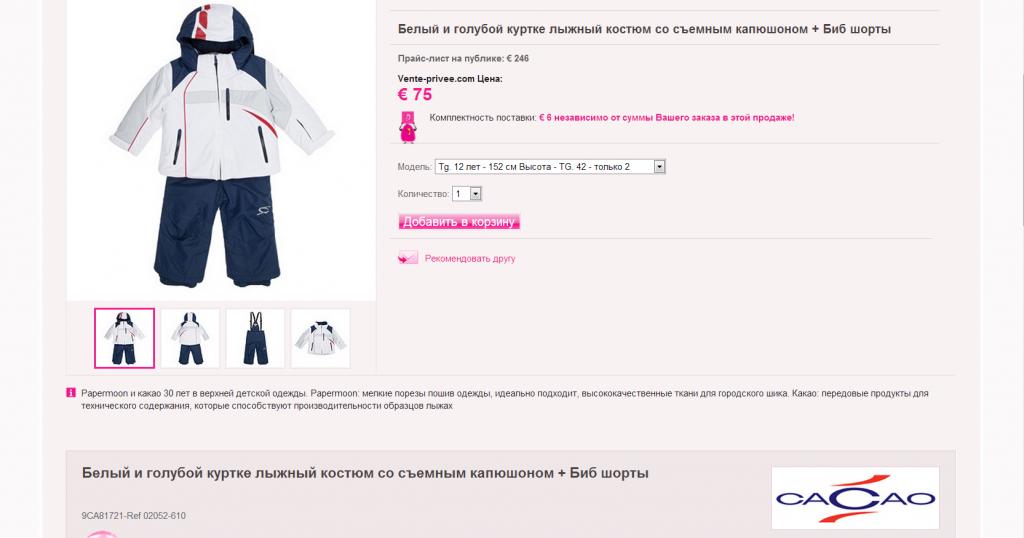 Продам лыжный термо-костюмчик на парня, можно и не на лыжи, а просто погулять))) Итальянская марка CACAO. Теплый, отлично стирается. Будет хорошо на рост 140-155 см. Обитает на Таирова, не далеко, подвезу на примерку. Б/у не много, в хорошем состоянии. Брала на Итальянской распродаже, на картинках подробное описание и цена (сколько стоил до распродажи и вышел мне+20% стоил 250 евро, вышел 90 евро.)) Продам за 1000 грн.
