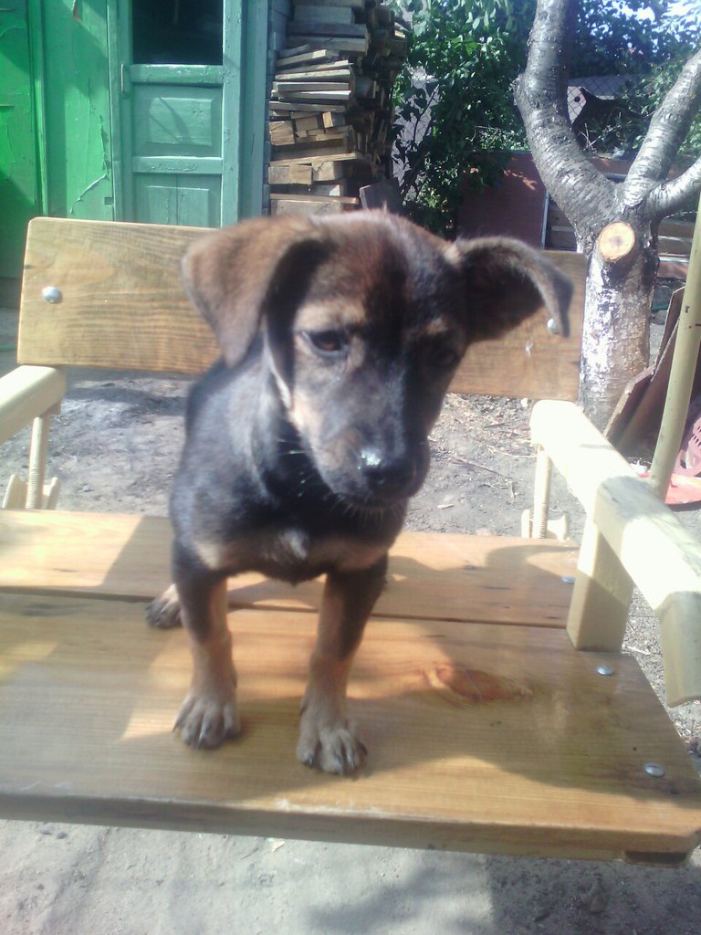 Сегодня с ребенком переходим через дорогу, вдруг появляется ни откуда, такое вот чудо,Переходило через дорогу несколько человек, но эта мелочь,просто повисло на штанине ребенка!!!Подошли к остановки-а она идет рядом, как хозяйская собака и от нас не отходит.Сразу вопрос: что делать?!!!Думала перенесу обратно через дорогу и подальше от дороги оставлю. Но идет наш автобус,выходят люди с автобуса и женщина говорит, что эту кроху вчера выкинули с машины,так она весь день бегает среди машин,Хватаю мелочь на руки,отвожу ребенка в садик начинаю искать- куда деть чудо.Домой нельзя! У меня карантин по энтериту,денег нет на передержку. Попросилась к соседке на пару дней.Проглистогонила, блох нет.Очень игривая,но девка с " перцем" гоняет котов, Ведет себе как хозяйка, очень привязана к человеку,ходит за ногами,Но одна сразу начинает выть!
