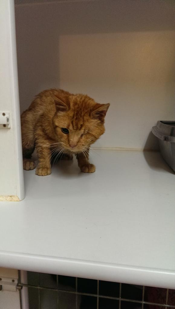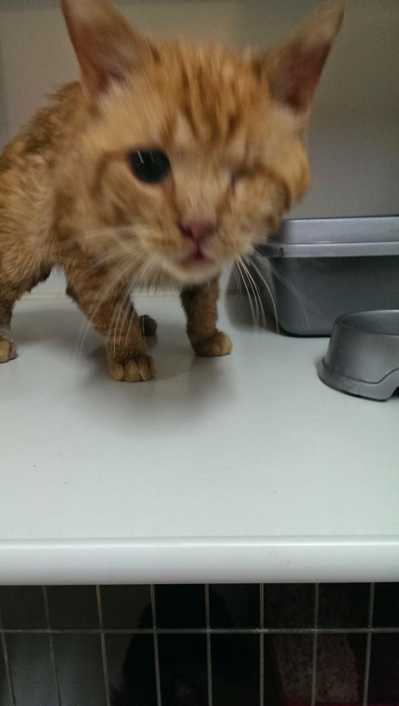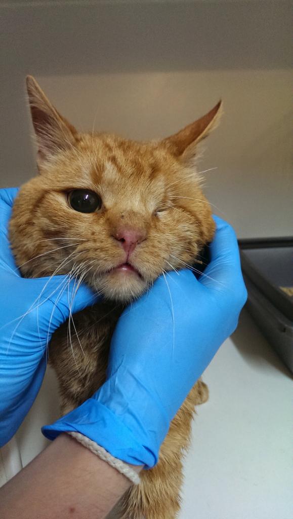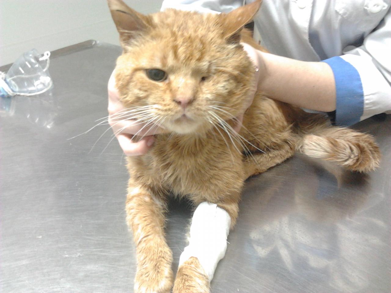 В клинике, котику сделали анализ крови и проверили на наличие всякого-разного. Оказалось, что котик не раз пострадал от нападения собак, он видит, хоть и не очень хорошо, рану на лапке зашили. Еще обнаружена простуда. Кот получает необходимое лечение.