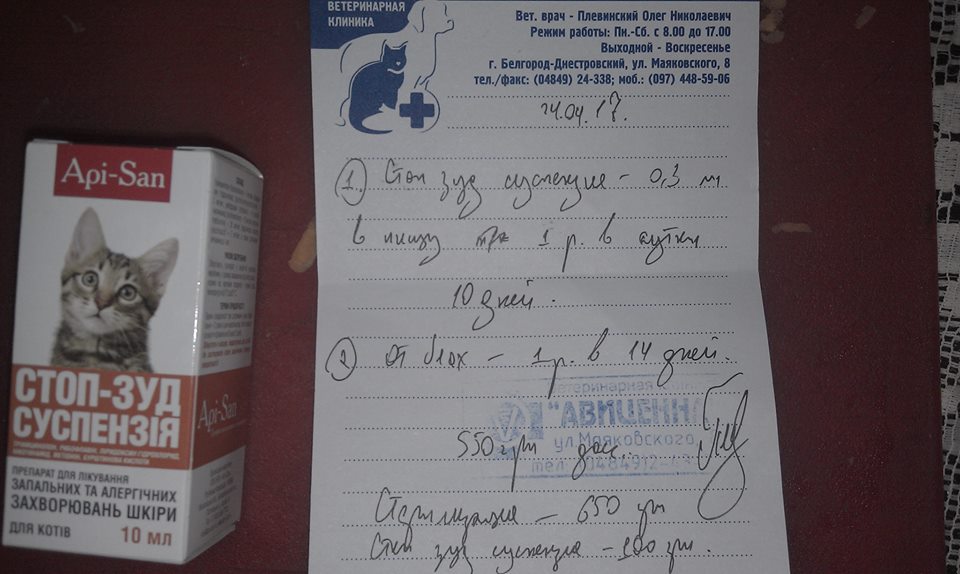 Если ВЫ ВСЕ не против ,я 500 грн отправл в счет долга по Полиграфу,остальное оставл на стерлзацию.На эту процедуру у меня собака Булка(из вчерашнего приобретения)три малявочки(Багира Кисточка и Сима) )Элизабет(кошка с мусорки).,слабовидящая Роза и одесский джентельмен Жорж.Если цены не оменялиись(кошки по 250,собака 500.кот 100)то сумма получается 1810грн +300 на бензин=2150грн