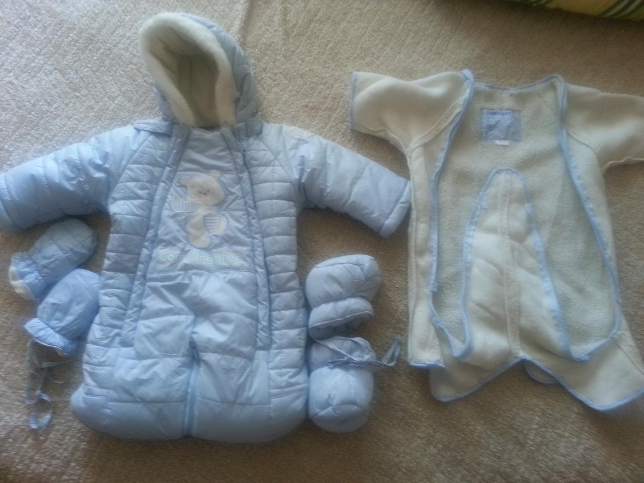 Комбинезон растёт вместе с ребёнком - можно застегнуть конвертом для новорожденного, а с 6мес. застёгивается штанишками. Комбинезон очень тёплый и удобный. 600грн