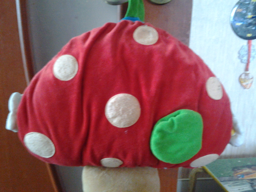 Грибок подвешивается на кроватку,в наборе зеркальце, развивающие игрушки( тянешь за кольцо - вибрируют,жужжат,гремят как погремушки). Выполнен из различных материалов,очень хорошо развивает моторику у самых маленьких.Сзади в закрытом виде есть большой карман.