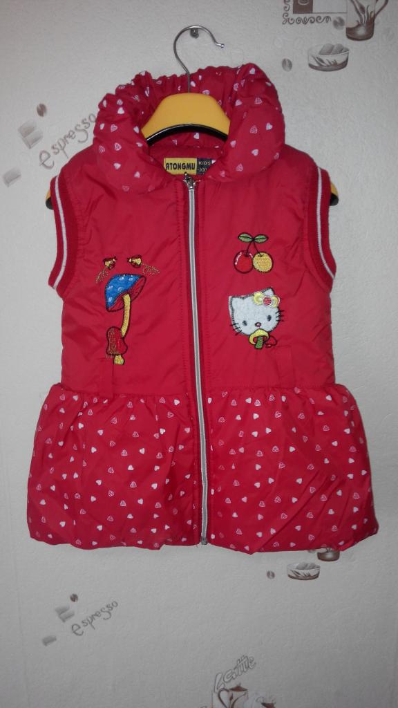 3. Красная теплая желетка, верх плащевка, подкладка флиз, на синтепоне ( утерян пояс)
