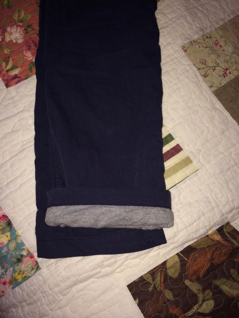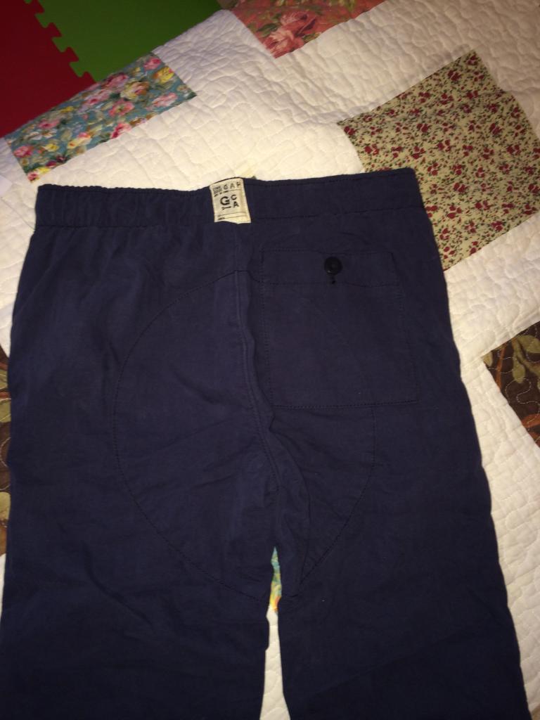 Вы про брюки Gap? Они темно синие. Полу обхват талии 36 см, пояс регулируется
