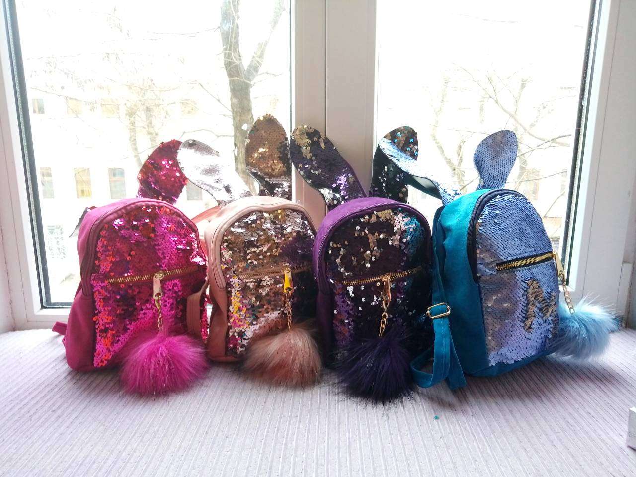 Очень классные рюкзачки, меняют цвет в зависимости от того в какую сторону проведешь по пайеткам.
