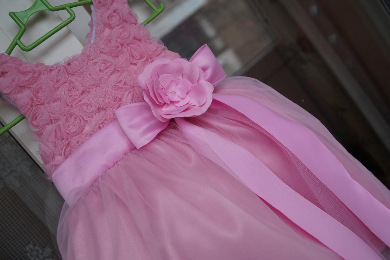 Цветок из шифона с крепко пришитыми бусинами. Лента из мерцающего фатина с кружевом - сзади завязывается бантом. Потайная молния на спинке. Все швы спрятаны - швов "к телу" ребёнка нет.
