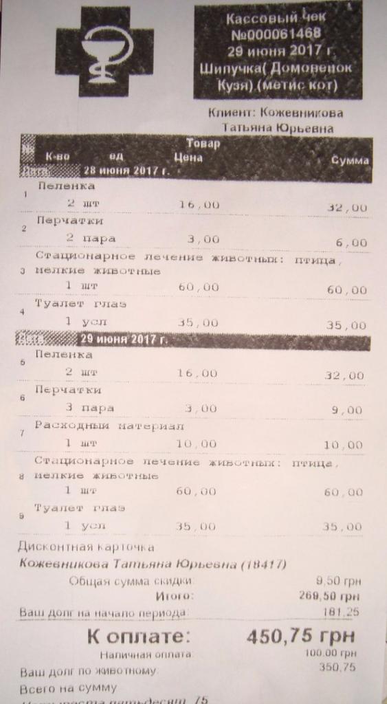 Сегодня заплатила последние 100 грн., что могла...Помогите Вылечить Кузю!