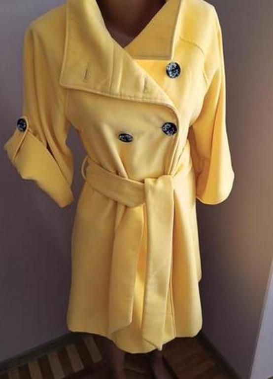 Шикарное, романтичное, невероятно женственное пальто, теплого ярко жёлтого , трендового цвета. Мягкая кашемировая ткань содержащая 95% шерсти, стильный крой, контрастные, необычные, принтованные пуговицы - все это сделает Вас интересной, заметной, выделяющейся из толпы и привлекающей восторженное внимание окружающих!