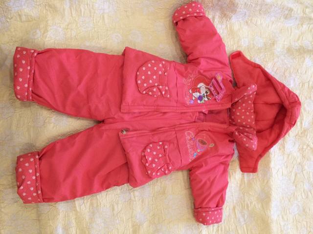Продаю новый комплект на девочку кораллового цвета. Комплект с биркой! состоит из полукомбинезона и куртки. Размер указан 13, примерно2- 3 года. Пишу замеры: рукав о плеча 26 см ( если откататься манжет 31 см), длина куртки от плеча до низа 41 см, ширина от подмышки до подмышки 34 см, длина штанины с учётом застегнуть лямки 68 см ( с токсичным мандатом 71)Удобные манжеты на рукавах и штанинах продлевают возможность использовать комплект. Утеплен синтепоном плюс внутри тонкий материал типа флиса. Цена 500 грн за набор.[IMG][/IMG]