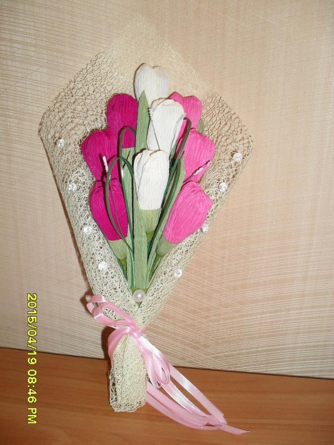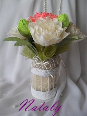 Букеты из конфет - букеты с использованием конфет и цветов из бумаги, ткани, органзы, украшенные декоративными ленточками, бусинками и другими флористическими материалами. Букеты из конфет смотрятся очень эффектно!