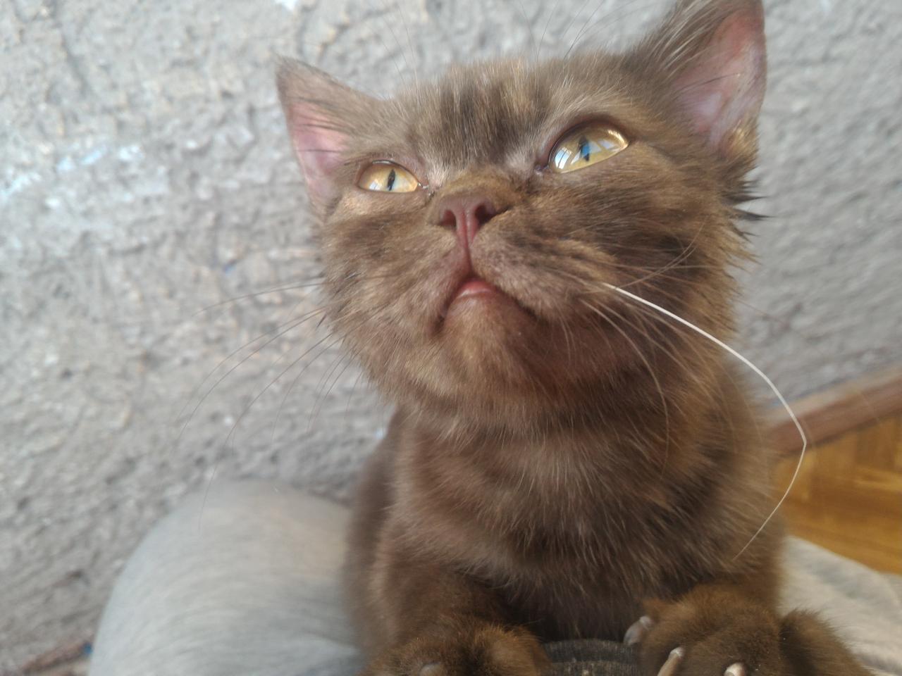 Прошу помощи на лечение котенка, которого сегодня подобрали с сыном. Просто не смогла взять и уйти: он выбежал из кустов и кинулся под колеса наших велосипедов, плакал. По виду - шоколадный скоттиш-страйт. Уши в болячках. Еще ранки на спинке. Явно взяли в семью, а потом выкинули, чтобы не лечить, потому что видно, что не первый день на улице.