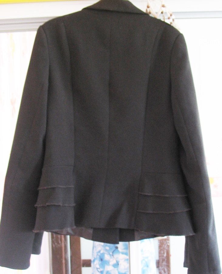 2. Пиджак Керченской фабрики. р.158. Цвет черный. Силуэт приталенный, отделка -многоярусная баска