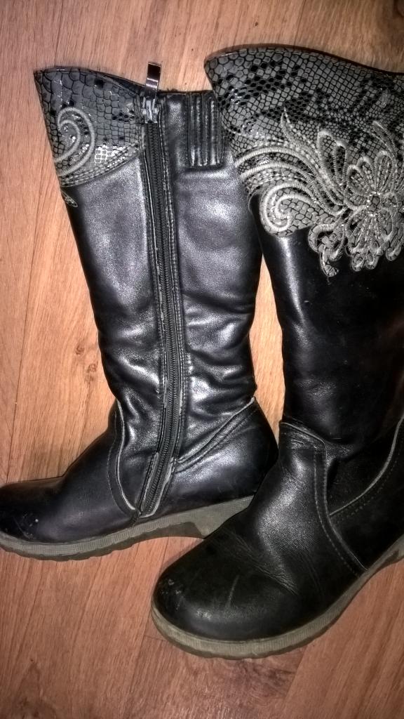 Продам за 300 гр зимние сапоги для девочки "Томм" в хорошем состоянии, кожаные , чёрного цвета, мех цигейка, размер по бирке 32