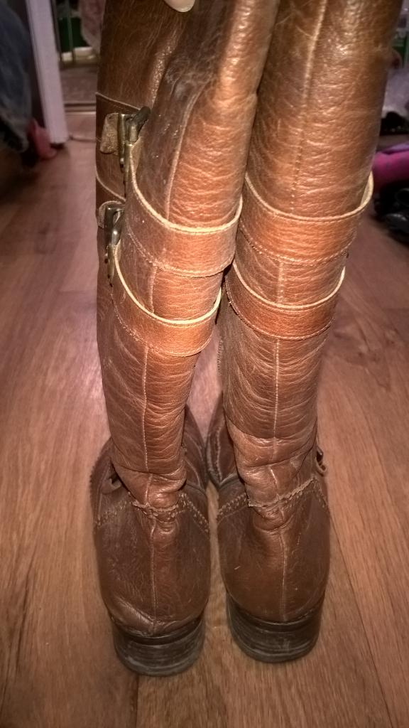 Продам за 500 гр зимние сапоги для девочки в хорошем состоянии, кожаные , коричневого цвета, мех цигейка, размер по бирке 37