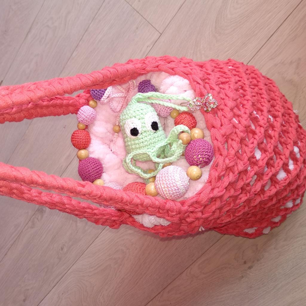 Можно всё упаковать в вязаную авоську из трикотажной пряжи, которую потом можно использовать под обычную экосумку.