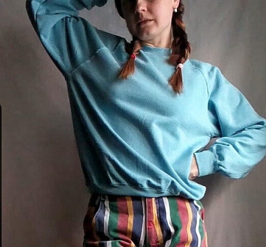 Круговая вязка свитшота, т е у него нет боковых швов.