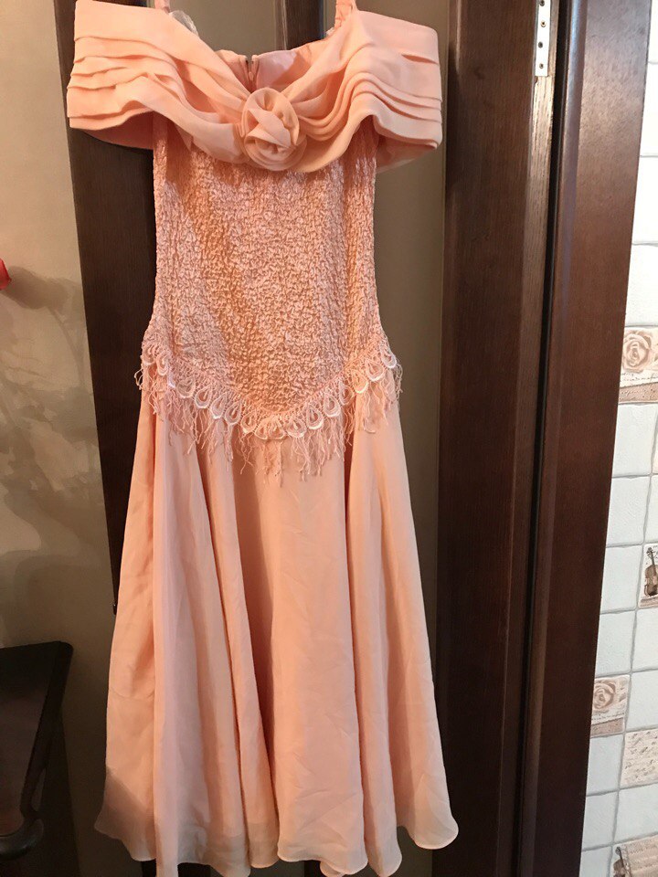 Продам красивое вечернее платье нежно персикового цвета,производство USA.Объем груди 70см,талия 74см,длина 110см.цена 600 грн.