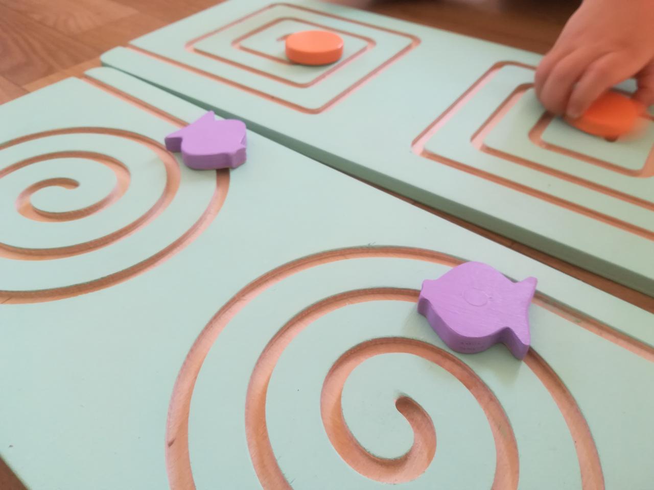 Межполушарные доски или лабиринты - это развивающие игрушки, предназначенные для тренировки обоих полушарий головного мозга. В результате прохождения лабиринта одновременно разными руками улучшается взаимодействие и синхронизация работы левого и правого полушария мозга. Упражнение влияет на мозолистое тело, в результате развивается восприятие, долгосрочная память, координация движения рук, мелкая моторика, облегчается процесс чтения и письма. Как пользоваться? Ребёнок берет бегунок и вставляет его в начало лабиринта, проходит весь лабиринт сначала только правой рукой, затем только левой рукой, после этого двумя руками одновременно. Таким образом в работу включаются оба полушария головного мозга и происходит их синхронизация. ��Упражнения желательно проводить ежедневно на протяжении минимум 6 недель, по 10-15 минут в день.