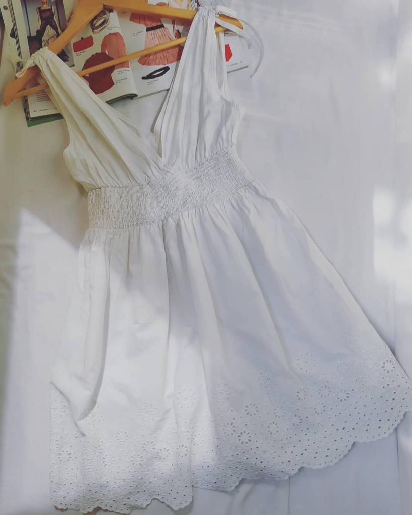 Летнее хлопковое платье с модной в этом сезоне набивной вышивкой. Лекая и натуральная ткань жарким летом носится с огромным удовольствием. Есть хлопковый подьюбник. Спинка немного открыта. Класный вариант как для города на каждый день так и на курорте. Благодоря резинке на талии подойдет на любой обьем.