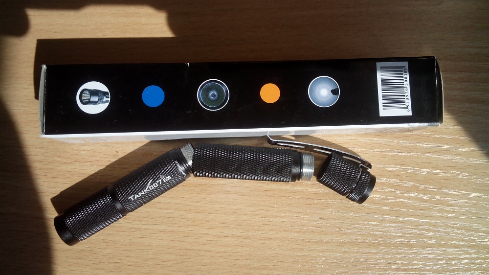 Комплектация: фонарь Tank007 Е06 черного, красного цвета, клипса для ношения фонарика на кармане, подарочная упаковка Tank007