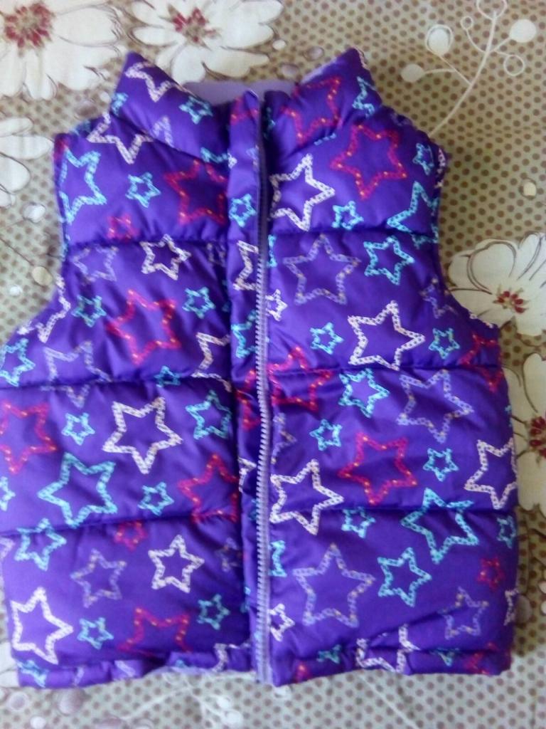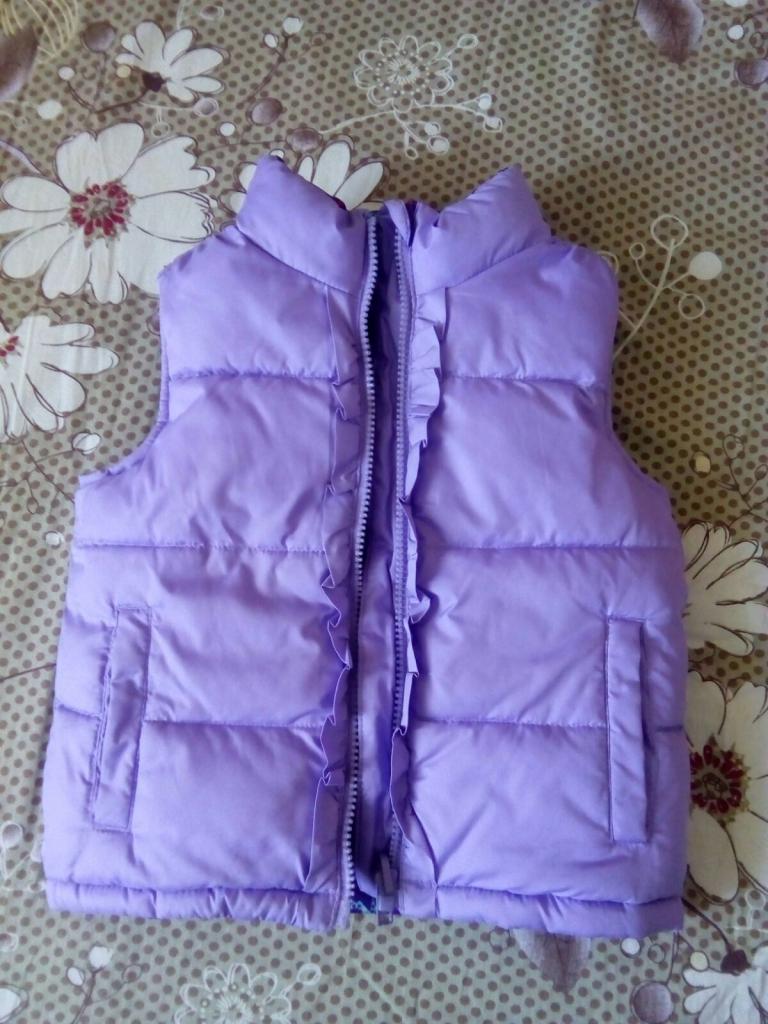 двухсторонняя жилетка от годика, смотря какой малыш, почти новая длина. от плеча—40см ,под мышками —26см ,плечи— 35см Заказана с амер сайта