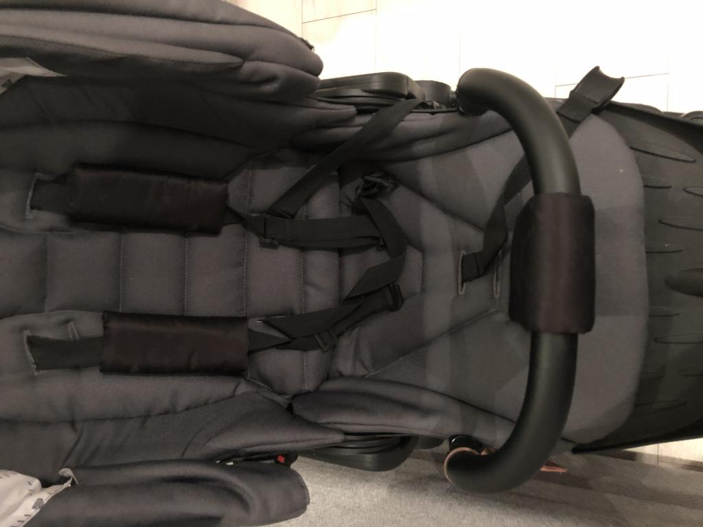 Родительская ручка -экокожа, регулируется по высоте. Бампер съемный.