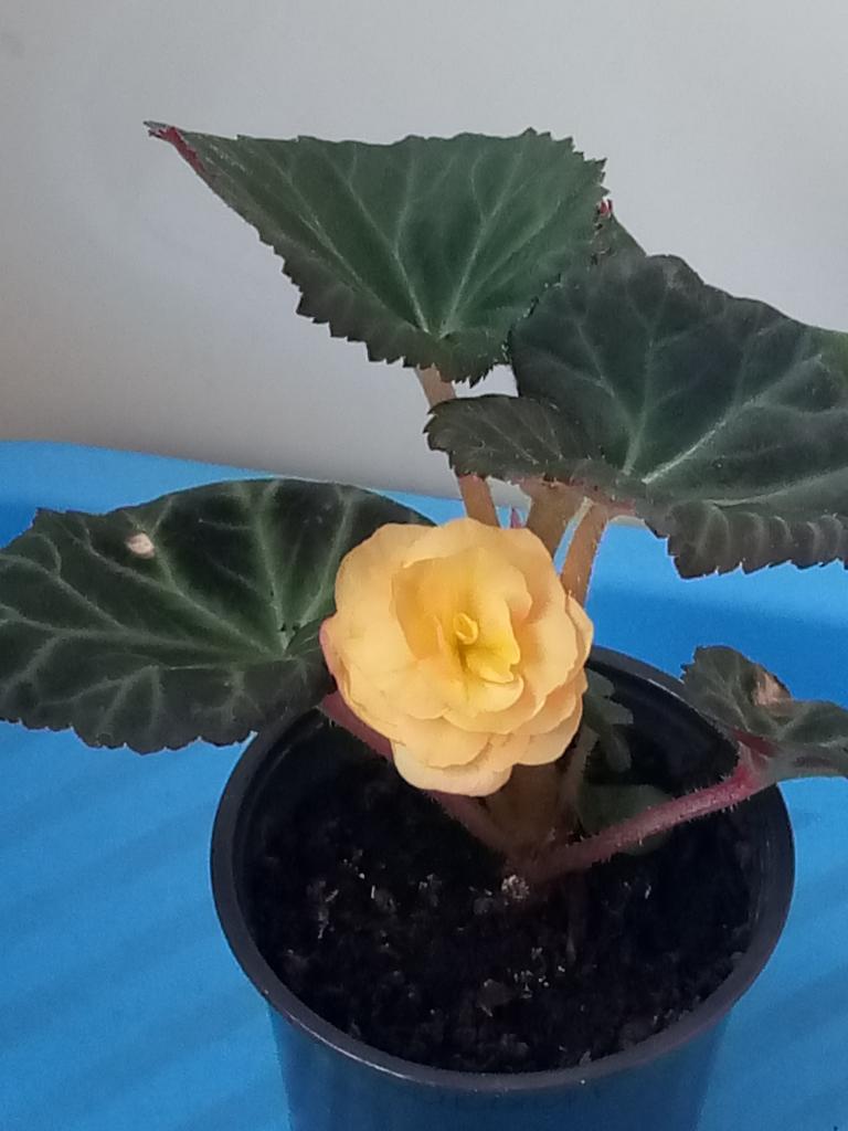 2. Бегония Fortune Golden Shades – 50 грн. ПРОДАНА Вырастила с семян (посев 23 января). Цветок распускается и начинает по чуть-чуть увеличиваться в размере, в позухе следующего листа уже новый бутон.
