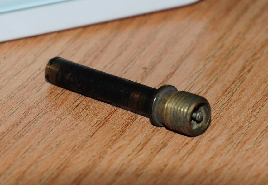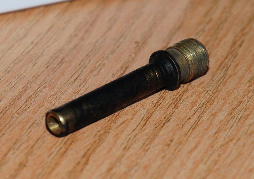 На фото ниже вы видите ниппель с моего заднего колеса (бескамерный диск R13) который просто выстрелил как пуля и колесо за секунду спустилось. Счастье, что это произошло когда машина остановилась, а не ехала.
