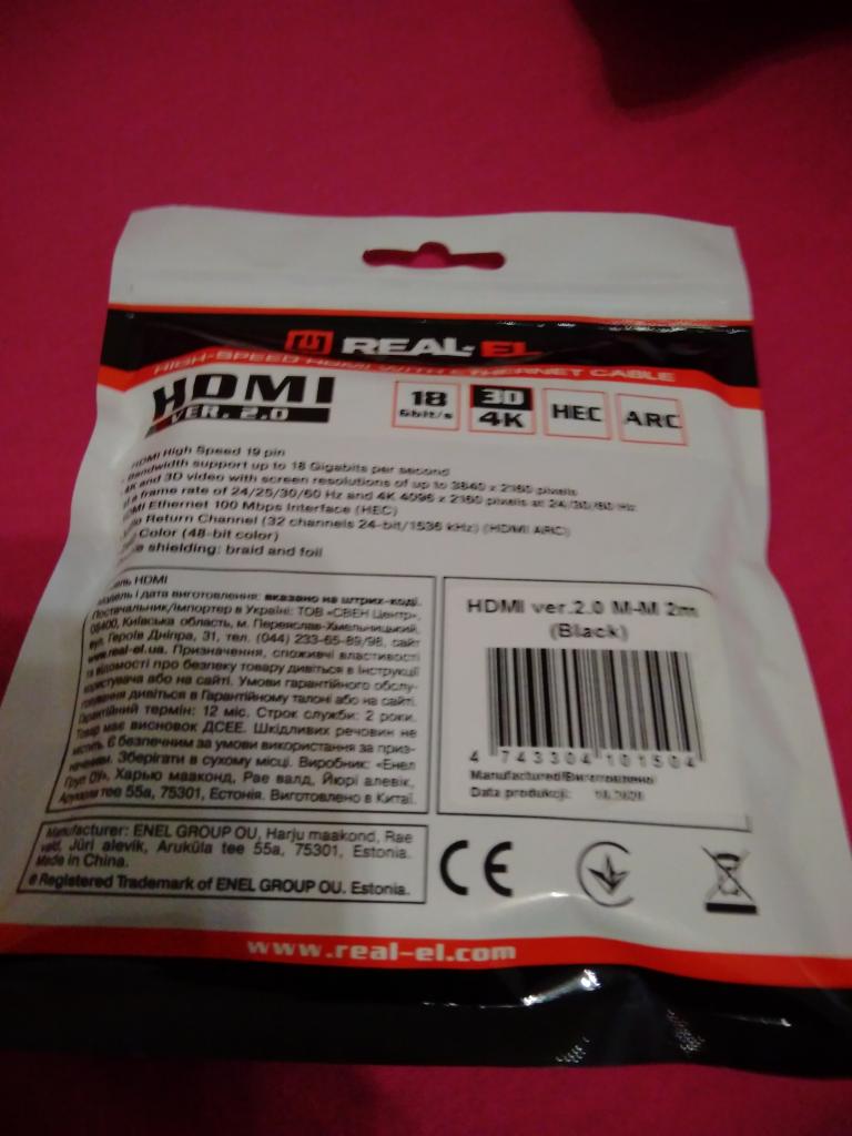 Тема: Кабель REAL-EL HDMI VER. 2.0 M-M 2М черный