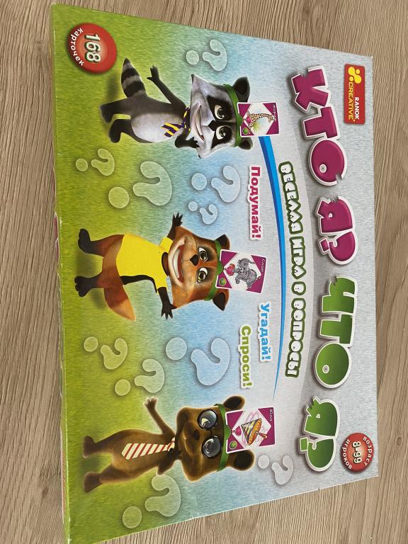 Веселая игра в вопросы! В нее могут играть как дети, так и взрослые, которые хотят получить массу позитивных эмоций и отличное настроение! Цель игры: участникам игры предстоит угадать предмет или персонаж, которым он является, задавая наводящие вопросы. Фишка в том, что остальные участники знают правильный ответ, и всячески стараются запутать отгадывающего. Карточки-персонажи выбираются случайным образом и одеваются на голову при помощи специальных наголовников, что делает игру еще более забавной.