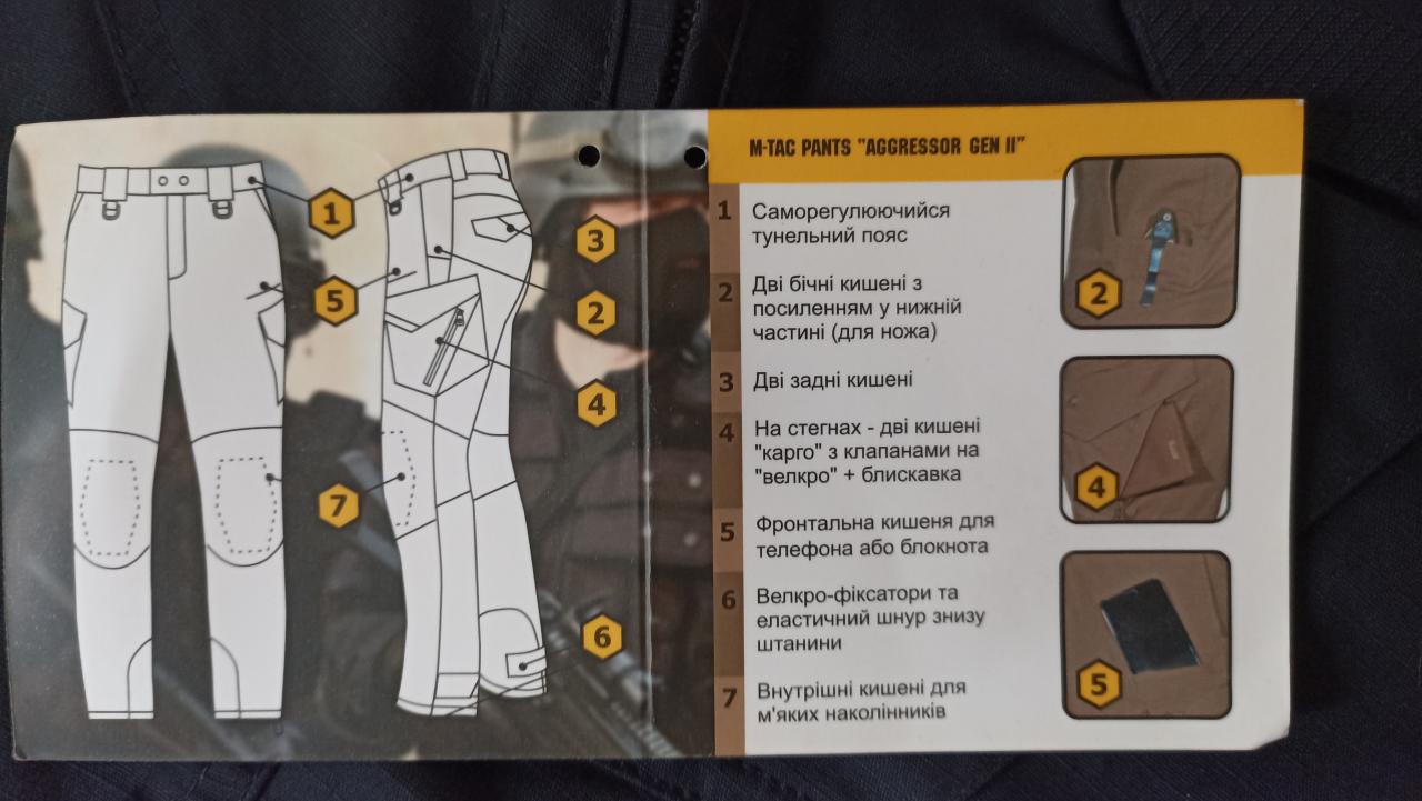 -2 боковых брючных кармана (с усилением в нижней части, предназначенным для крепления ножа);