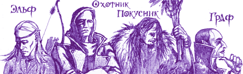 Собственно Охотник - хуманский парадокс; Эльф, зовомый также Елфом - хранитель мудрости дивного народа; Покусник - маг и волшебник, которому не чуждо ничто человеческое; Граф - таинственный бессмертный, могучий представитель ночного народа.