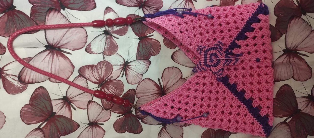 Сумки, вязанные крючком из полиэфирного шнура, с элементами макраме. 35*33 см Зелёная с серым 250 грн Розово-фиолетовая 350 грн 0688135691