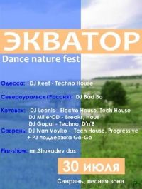 Друзья, оторвемся от «каменных джунглей», вдохнем свежего воздуха, забудем о буднях и насладимся праздником, который зовется – ЛЕТО! Встреча произойдет посередине между Одессой и Киевом – на ЭКВАТОРЕ.