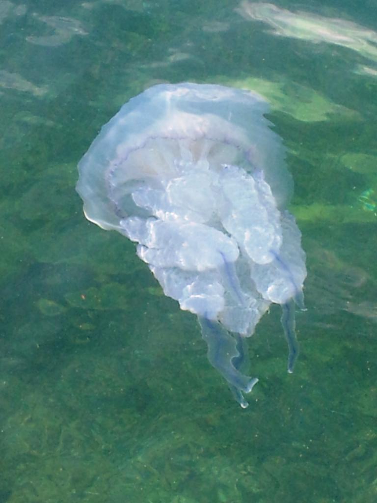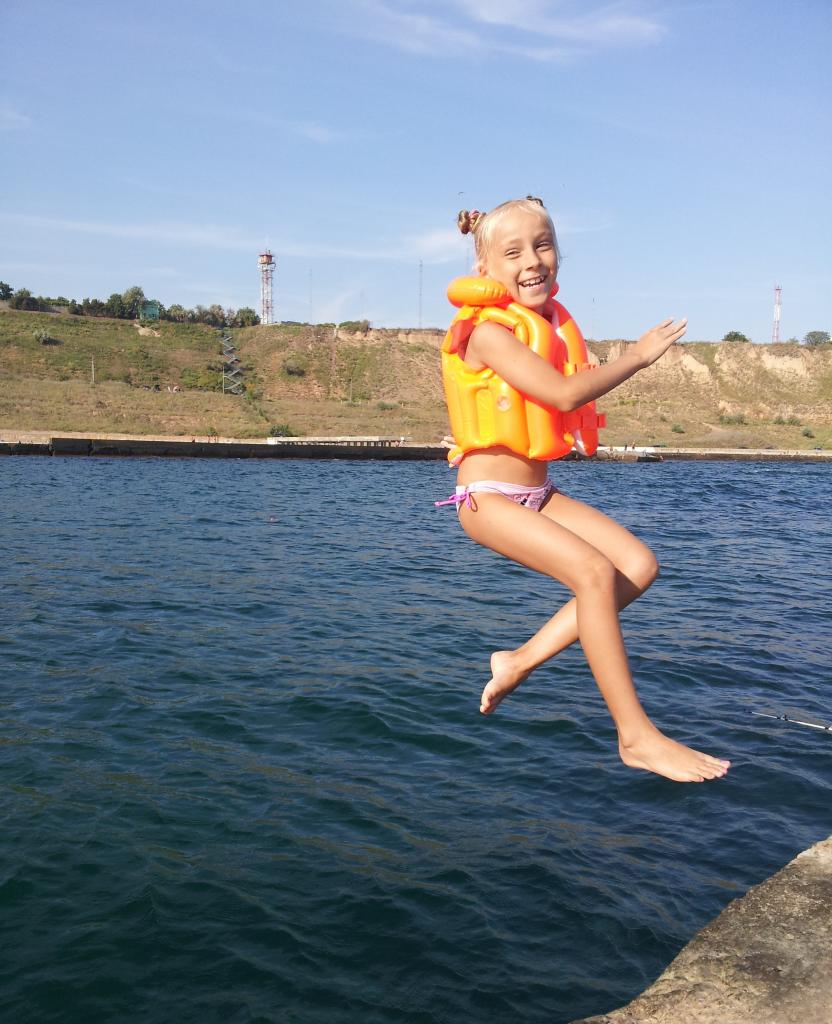 Море сегодня снова шикарное)), водичка ( на Зелёной горке) прозрачная, освежающая. Очень много медуз, причем немаленьких размеров, реально мешали мне спокойно понырять, а вот ребёнку зато никакие медузы не помеха)