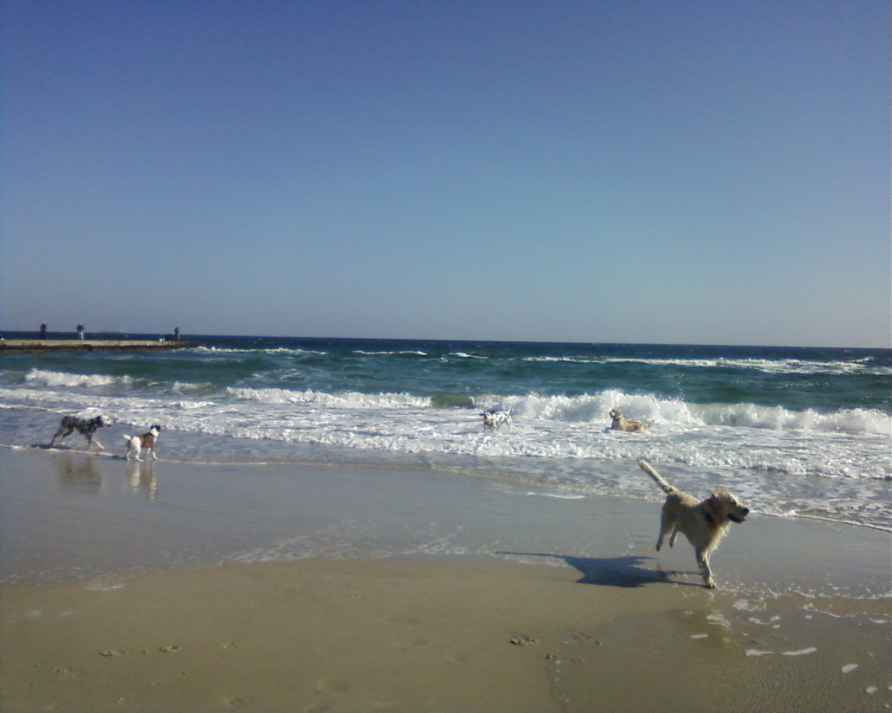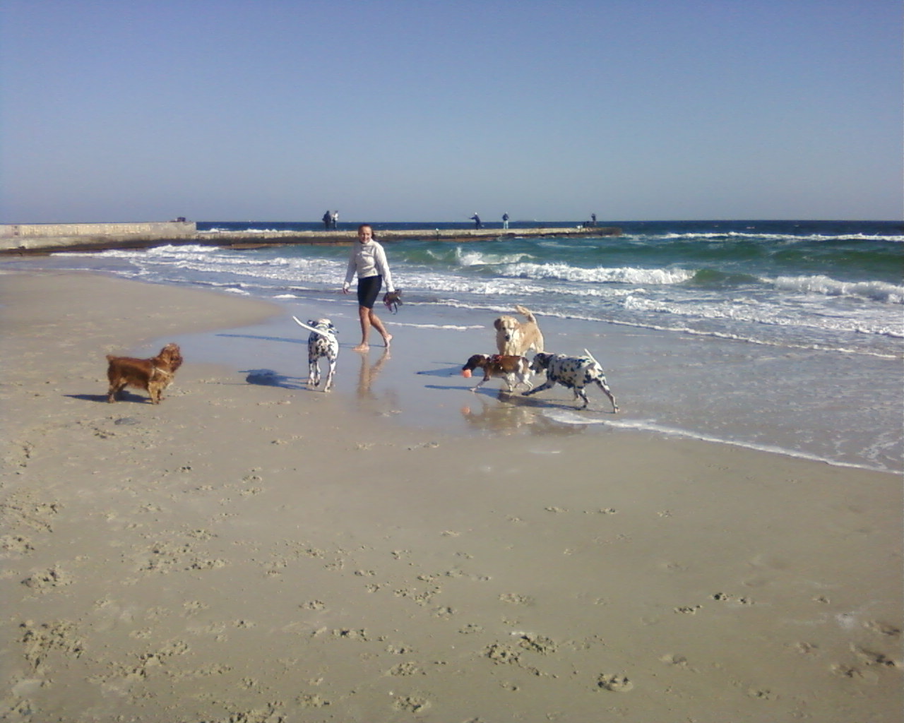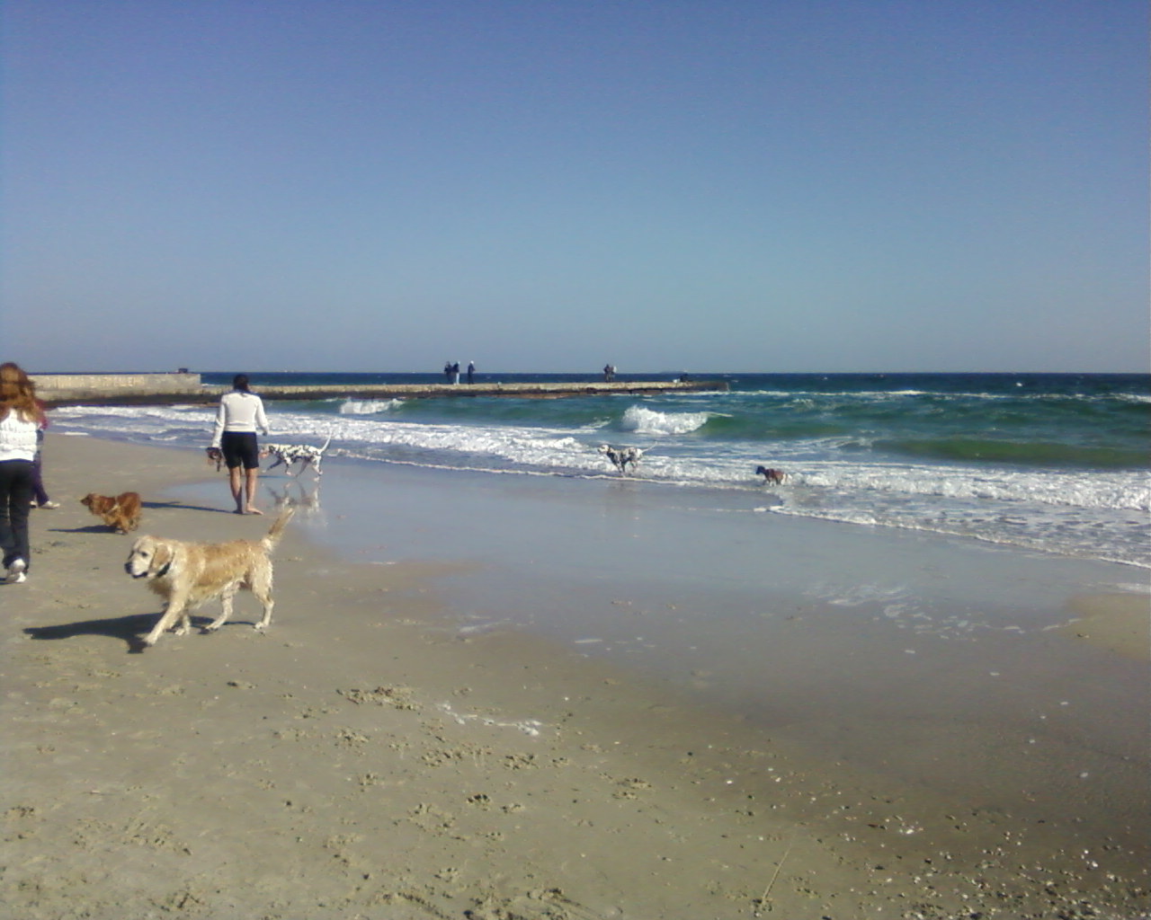 А это сегодня, в районе 16 ст.фонтана. Собаки веселятся, море красивое, видимость отличная, много людей гуляет, загорает. Хорошо в общем!