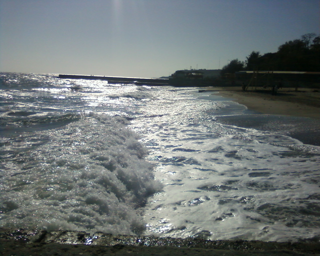 Теплый воздух, вода 16-17 градусов. Небольшой шторм. Отплывать опасно, но покувыркаться у берега вполне нормуль 8-10 станция
